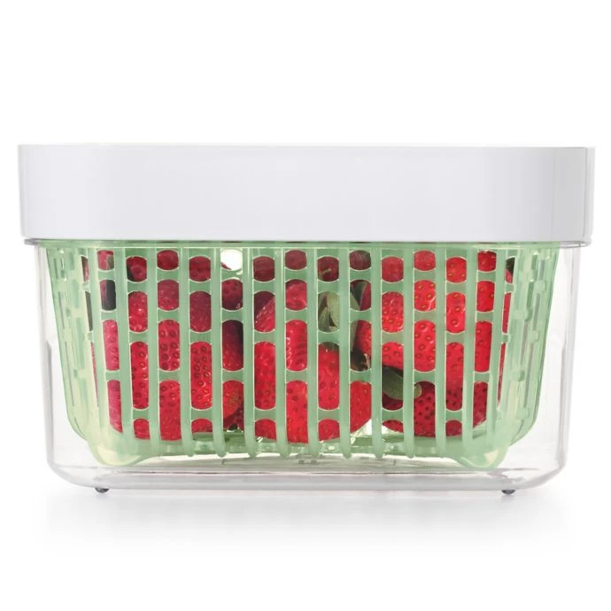 - The OXO Good Grips Green Saver Produce Keeper features an elevated, removable basket that promotes proper airflow and helps prevent moisture buildup by lifting produce up and away from the bottom and sides of the container
