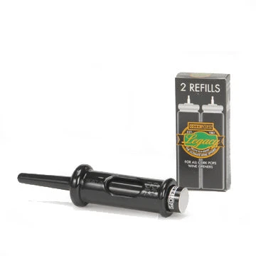The Cork Pops Cork Popper wine bottle opener is the fastest and easiest way to open a bottle of wine. Simply insert the needle of the Cork Pops Cork Popper straight down through the cork, press once on the top of the low pressure propellant cartridge, and the cork is lifed out with a celebratory “POP”! What could be easier? Each cartridge will open approximately 60-80 bottles before requiring a replacement. The Cork Pops Cork Popper is available in black and makes the perfect addition to your bar.