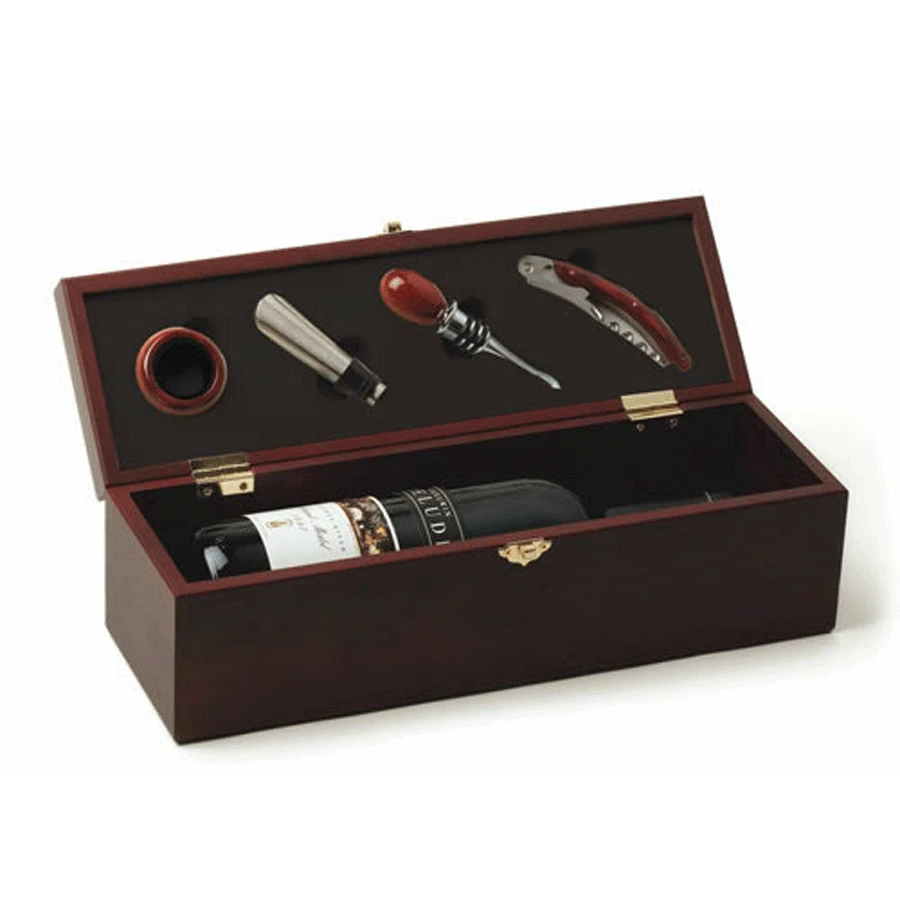 Corkscrew Sets True Fabrications Premium Cherry-Stained Wood Single Bottle Accessory Gift Set