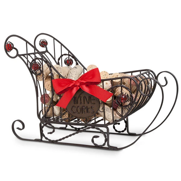 Perfect for the holidays, the Sleigh Cork Cage will deliver holiday cheer. It is a fun and innovative way to keep and cherish all of your wonderful wine memories. Just drop your treasured corks into the carriage. And don’t forget, this sleigh can hold a bottle inside as well, making it super special “delivery” for a gift bottle of wine or spirits! Artfully sculpted metal work with colored glass spheres.