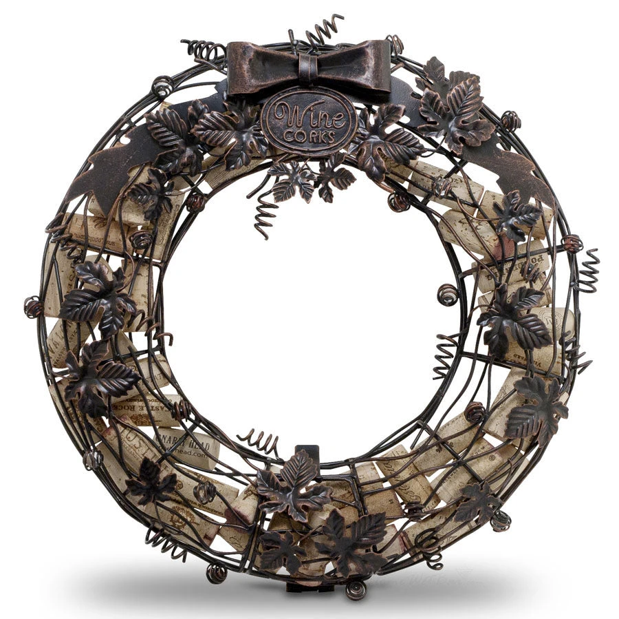 Pefect for the holidays, the Wreath Cork Cage is a fun and innovative way to keep and cherish all of your wonderful wine memories. Just drop your treasured corks in the top circular opening. Artfully sculpted metal work with colored glass spheres. Bottom hinges open to release corks.