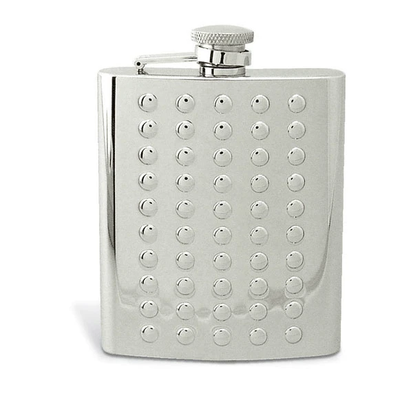 stainless steel with reflective metal rivet pattern. 8 oz.