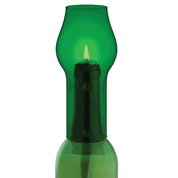 The glass bottle chimney protects the bottle candle flame from extinguishment, and fits both pewter and ceramic Bottle Candle designs. The glass bottle chimney turns any wine or champagne bottle into an attractive and mood-setting candle. Combined with the bottle candle, it makes a great gift for anyone who enjoys a relaxing romantic ambiance. Simply fill the bottle with enough Lamp Oil to submerge the wick, insert the wick / ceramic candle followed the glass chimney, and light. A bottle filled 75% of the way with oil can provide up to a full twenty-four hour period of light.