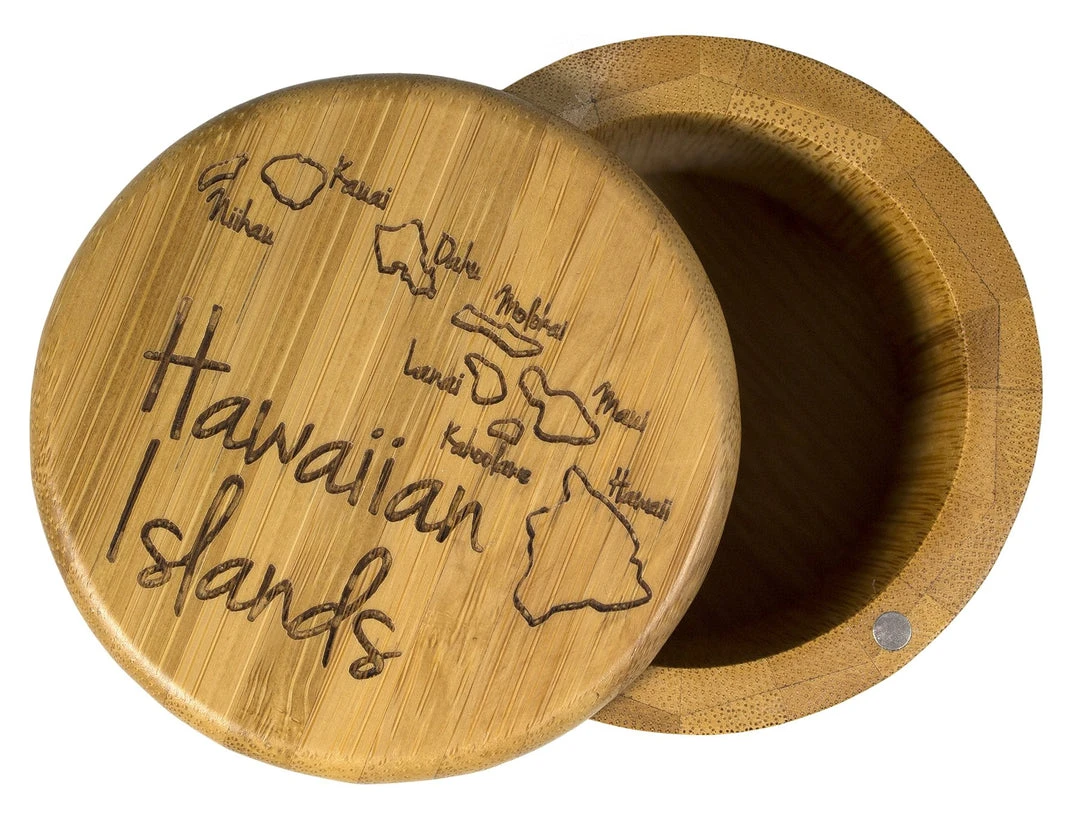 There’s really no better way to keep your spices and herbs fresh and at your fingertips than with one of our bamboo salt boxes. Our laser engraved Hawaiian Islands Salt Box is no exception! Crafted from rapidly renewable, organically grown bamboo.