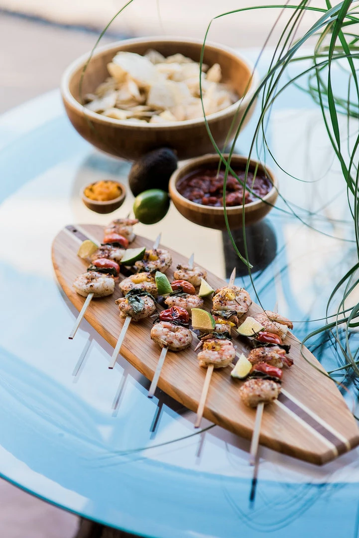 Surf’s up! Let us bring a little ocean to your next meal or party with our Surfboard cutting and serving board. The beautiful end grain inlay adds a dressy touch, making it a perfect serving piece.