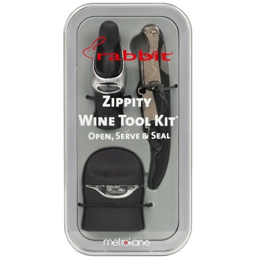 The Metrokane Zippity Rabbit Wine Tool Kit Includes: