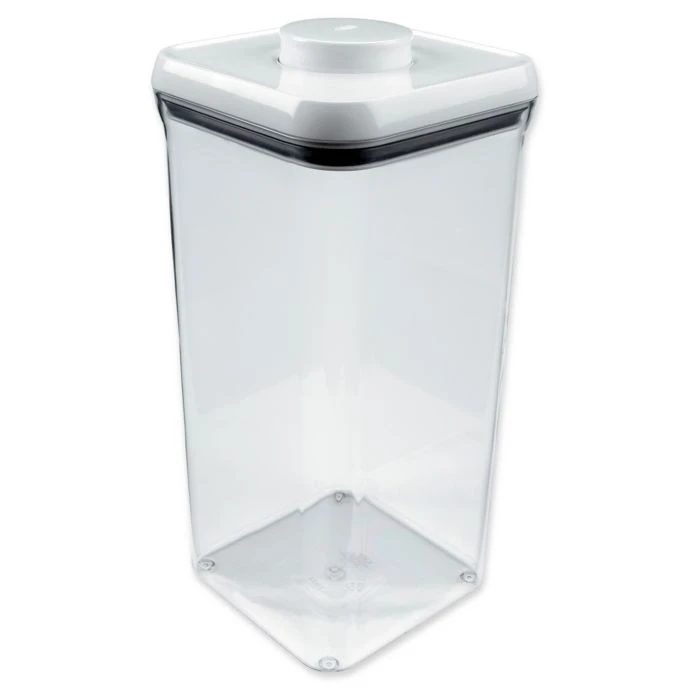 Maximize space with this efficient OXO Good Grips Square Food Storage POP Container. The airtight seal will keep things fresh with the simple press of a button.