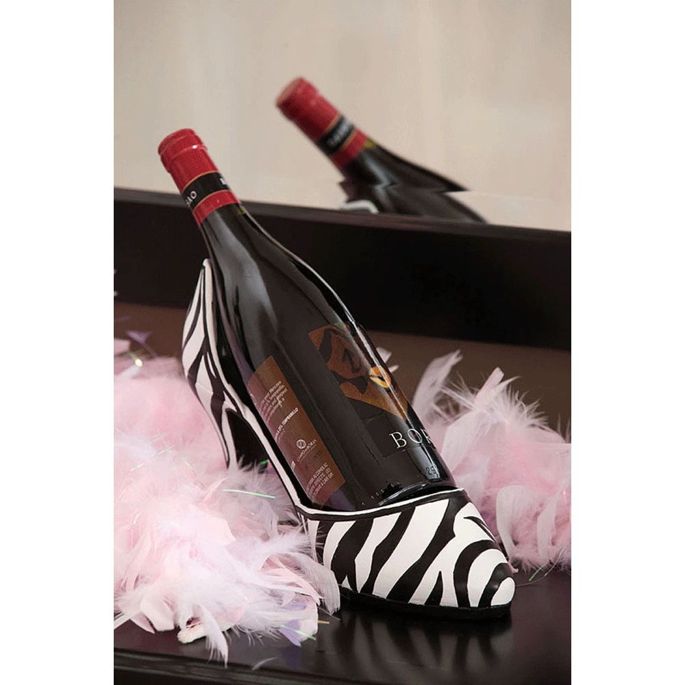 The Zebra Stiletto Wine Bottle Holder is wild and unexpected, this is a bottle holder that makes a statement on your counter top. A wine bottle fits perfectly into this Zebra Stiletto Wine Bottle Holder, surrounded by untamed zebra pattern. Why just bring a bottle of wine to your next girls’ night, when you can also bring the perfect shoe to match it?