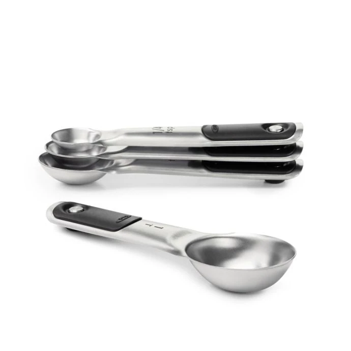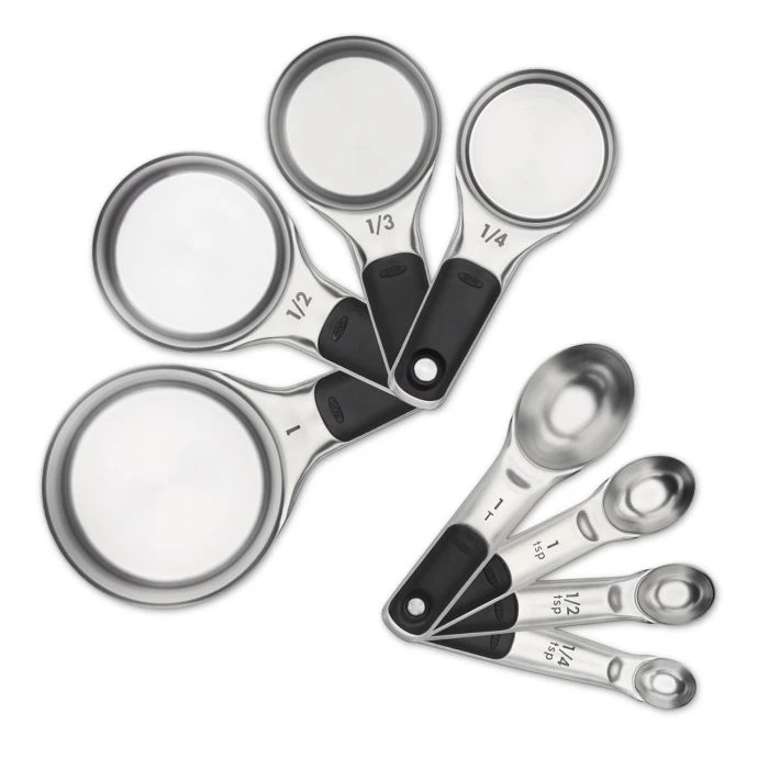- The sleek OXO Stainless Steel Measuring Cups and Spoon Set is a stylish yet functional measuring solution