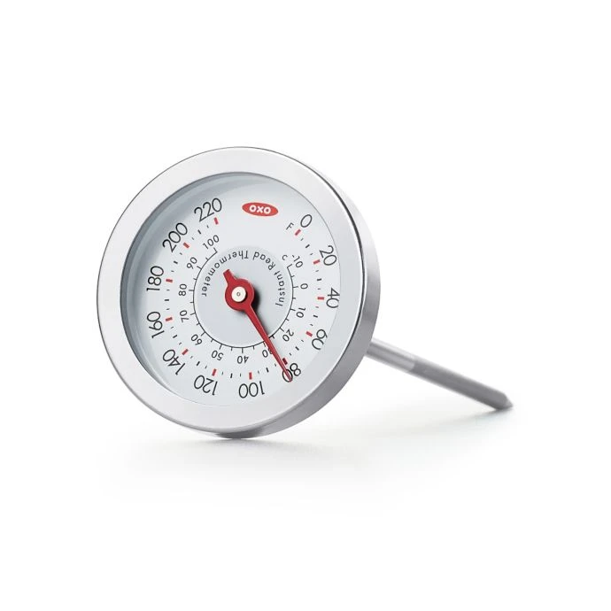 - Thermometer has large, easy-to-read numbers and is calibrated for accuracy