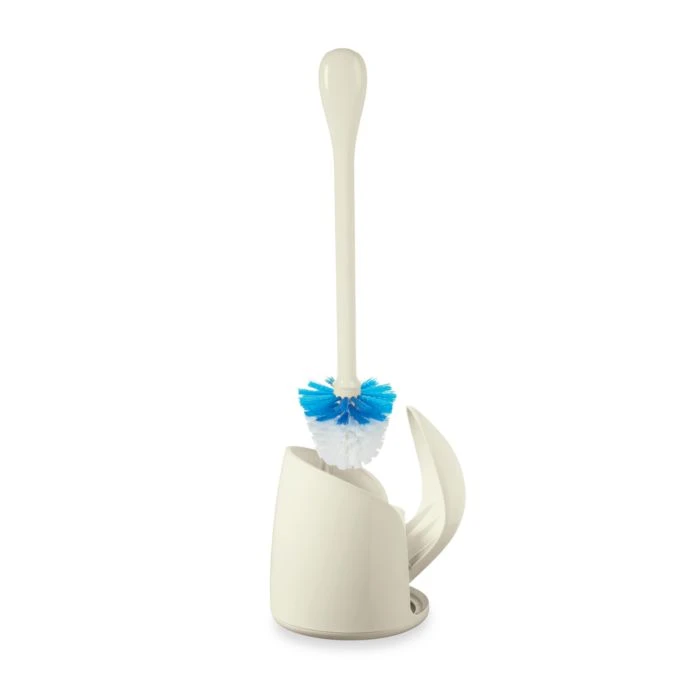 The unique canister design of this toilet brush allows it to be out of sight but easily accessed. Lift the brush and the canister door automatically opens.