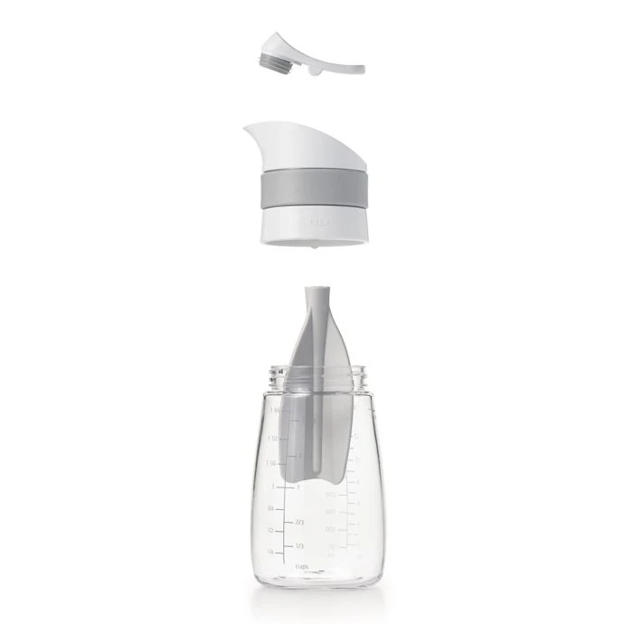 - Stir, serve and store salad dressing in the Twist and Pour Salad Dressing Mixer from OXO Good Grips