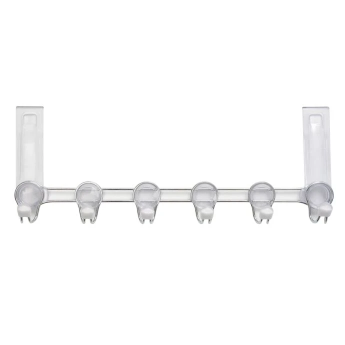 Over-the-door 6 hook rack automatically adjusts to fit securely over thin and thick doors (1 3/8″ to 1 3/4″). It has a soft, non-skid surface that protects door finish, and the non-slip hooks grip items securely.