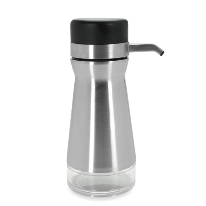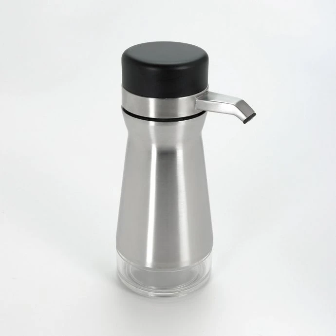 This convenient dispenser features a large, soft non-slip button for easy, no mess soap dispensing. Top has large opening for refilling. Strong stainless steel construction. Holds up to 12 oz. of soap or lotion. Non-skid base for stability.
