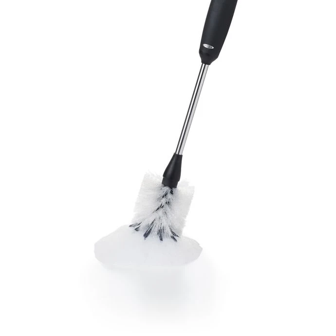 - Top tier OXO SteeL Bottle Brush has a soft, comfort-grip handle that is non-slip even when wet, two types of durable nylon bristles for both gentle cleaning and serious scrubbing, and stainless steel accents to blend in with any kitchen decor