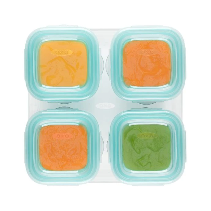 Portion, store, heat, and serve baby food with these OXO Tot Glass Baby Food Storage Blocks. The Baby Blocks are made of durable borosilicate glass, which is thermal-shock-resistant and include a stackable tray that makes for easy storage.