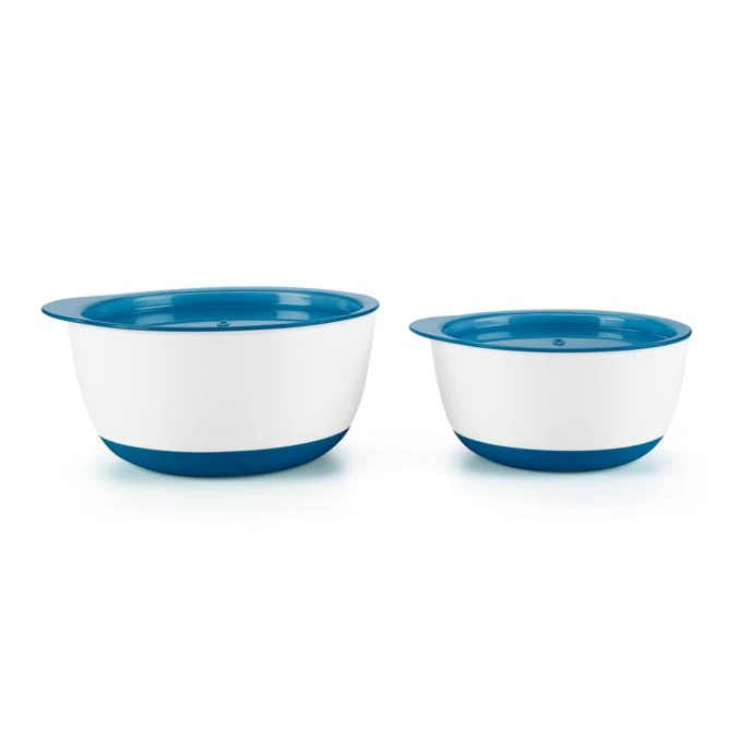 This 2-Piece Bowl Set with Lids from OXO Tot makes it easy and convenient to store and transport food for your child. The non-slip weighted bottoms help avoid spills and the tall sides make it easy for little ones to scoop food onto a spoon.