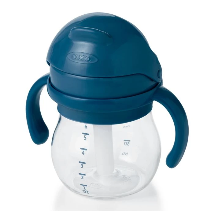 Start your little bundle of joy on the journey to a big kid cup with the OXO Tot Transitions 6oz. Straw Cup with Handles. With a straw valve that opens with a simple touch and a hinged, leakproof cap, this cup will make training your toddler easy.