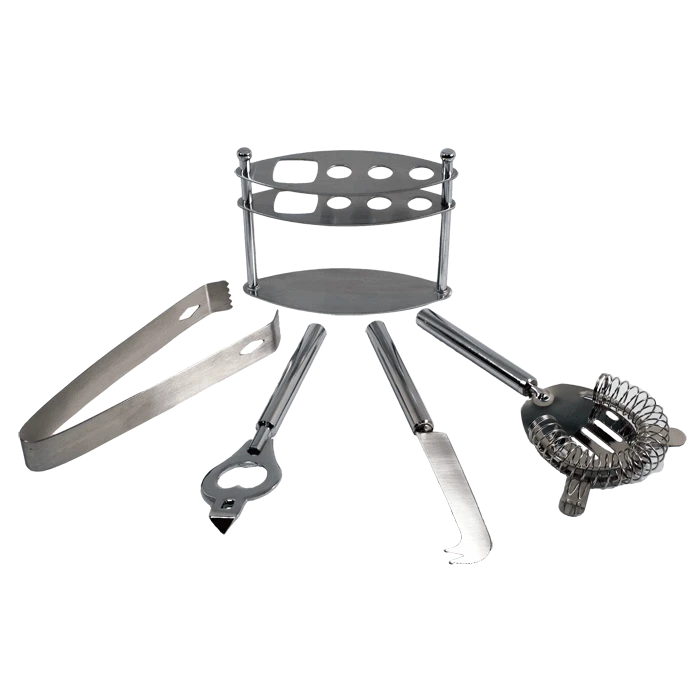 No bar is complete with out a Bar Set! Pampered Grape’s BarMaster 6pcs Bar Set includes 4 cocktail-making essentials in stylishly classic stainless steel. Set includes strainer, bottle opener, bar knife, ice tongs and all-in-one holder. Everything you need to entertain like a professional