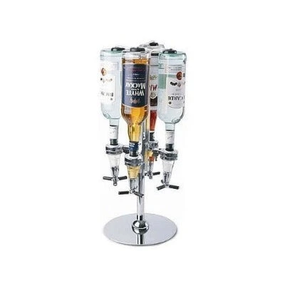 The Butler did it! With expandable arms to grasp and support 4 bottles of your favorite drinks for easy pouring, entertaining is a breeze. Convenient Shot Dispenser has rubber nozzle, suction cups and turning handle. Just press the handle to dispense liquid into a glass. Made of chrome-finished metal and plastic. Great hostess gift! *This item is oversized and will be shipped separately. Â