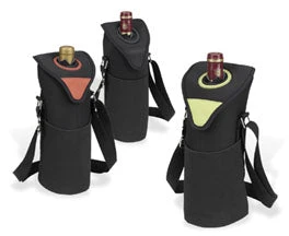 The Picnic at Ascot Neoprene Single Bottle Tote is a stylish single bottle insulated carrier with shoulder strap for easy carrying. The has Picnic at Ascot Neoprene Single Bottle Tote a no leak lining. The Dimensions of the Picnic at Ascot Neoprene Single Bottle Tote are 4″w x 11″h x 4″d.