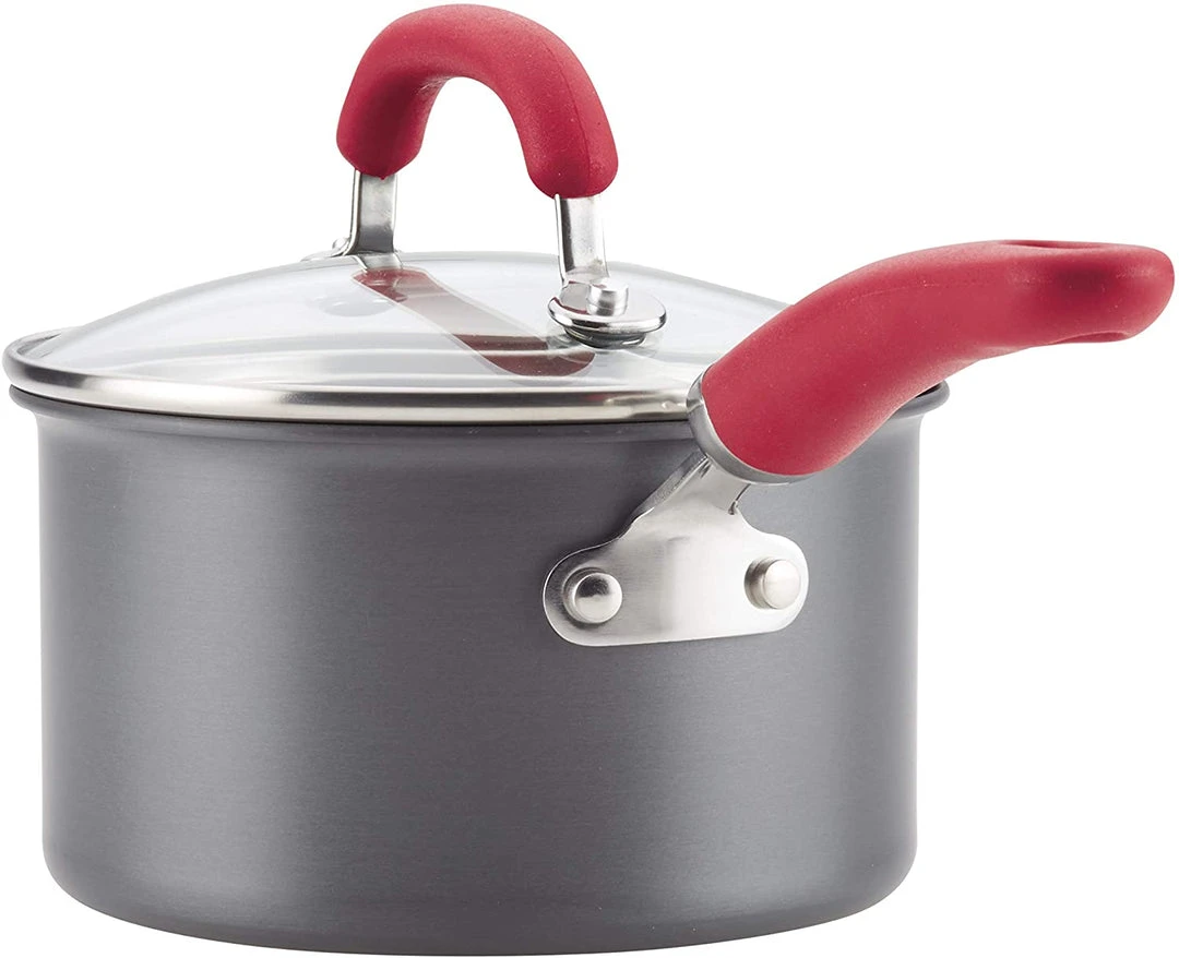 Rachael Ray Create Delicious 11-Piece Hard-Anodized Aluminum Nonstick Cookware Set brings high performance and cooking convenience to home chefs eager for kitchen versatility with long-lasting dependability. Constructed from hard-anodized aluminum, this collection of essential pots and pans is enhanced with PlatinumShield Technology nonstick to be 9 times harder than titanium for effortless food release. Colorful, dual-riveted stainless steel and silicone handles provide comfort and control that’s oven safe to 400°F.Â