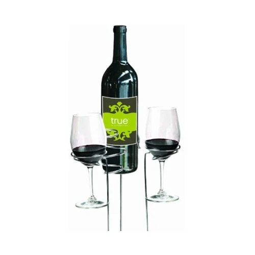 Designed to stick in the ground, these accessories take the frustrating spills out of picnicking. Push these sticks into the ground anywhere and enjoy the “spill free” outdoor wine and dine experience. The Heavy-gauge stainless-steel holders include 2 wine glass holders and a wine bottle. Holds any stemmed wine or champagne glass.