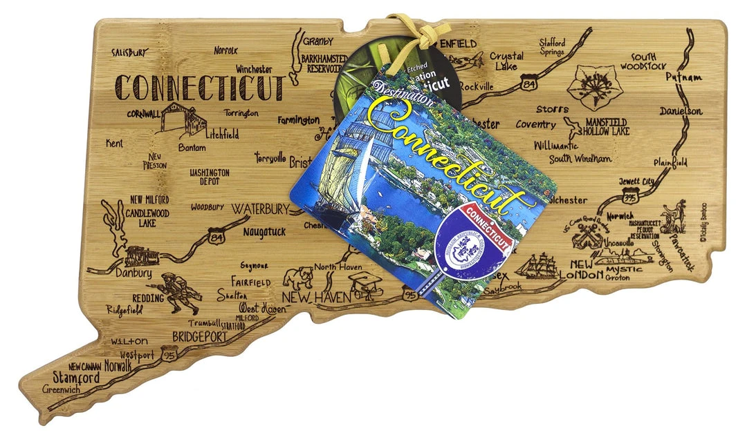 Destination Connecticut measures 16-1/2″ x 9-1/2″ x 5/8″