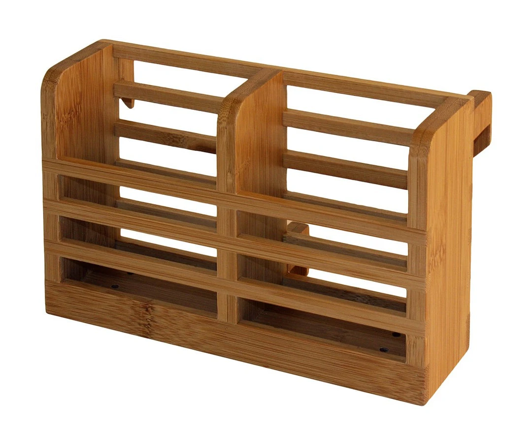 This bamboo Dish Rack Utensil Holder hooks onto the side of your dish rack to keep your flatware and utensils under control. Use with our regular or compact dish racks or for stand-alone drying.