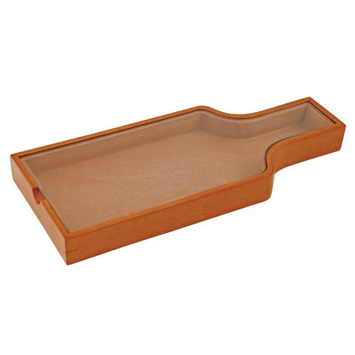 Display your favorite corks in this beautiful bottle-shaped serving tray. Made out of rubber wood and glass, it holds approximately 36 corks.