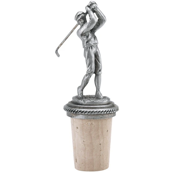 Great for golfers, this pewter stopper features a classic golfer on top and a cork base. This stopper is a must-have 19th hole accessory.