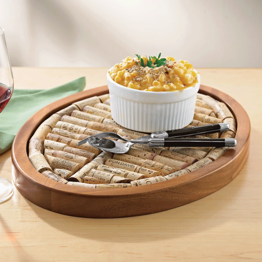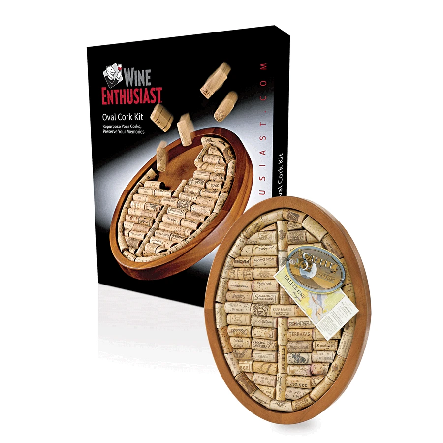 Fill the Oval Wine Cork Trivet Kit with keepsake corks and enjoy “memories of wines past”—along with a handy board for protecting surfaces and furnishing walls! A fun, eco-friendly way to turn your love for wine into a handsome home accent. We supply the solid mahogany frames and instructions. You supply the wine corks and imagination. Mahogany sourced from sustainable tree plantations. Approx. 60 corks needed to fill tray.